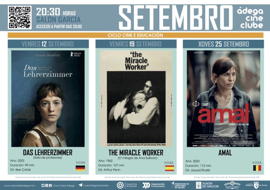 E remataremos o xoves 25 tamén ás 20:30 no Salón García coa película belga de 2023 “Amal”, escrita e dirixida por Jawad Rhalib. Trátase dun dos filmes máis valientes e con mellores críticas do 2023, e cóntanos a historia dunha mestra francesa nun instituto de Bruxelas que trata de inculcar aos seus alunos a paixón pola lectura, a tolerancia e a liberdade de expresión. Ideas que molestan a algúns alunos e compañeiros vinculados ao extremismo islámico.